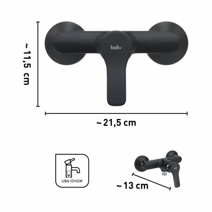 Für die erfrischende Dusche am Morgen oder den wohltuenden Ausklang am Abend: Unsere baliv Duscharmaturen sind zuverlässig für dich und deine Familie da und begleiten euch im Alltag. Und damit du deine Wohlfühloase auch sorglos genießen kannst, gehen bei unseren Armaturen Qualität, Design und Funktion Hand in Hand. Bei unserer Produktion legen wir natürlich Wert darauf, nur hochwertige Materialien zu verwenden. Denn wir finden, eine Armatur sollte nicht nur gut aussehen, sondern auch robust und langlebig sein. Außerdem erfüllen alle Teile unserer Armatur, die mit Trinkwasser in Berührung kommen, die hohen Hygienestandards der aktuellen Trinkwasserverordnung des Umweltbundesamtes (UBA) und des Deutschen Vereins des Gas- und Wasserfachs (DVGW).