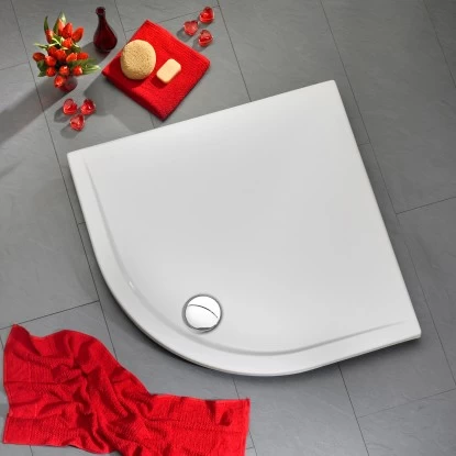Hyperflache Duschwanne mit nur einer Wannenrandkante für den bequemen und hindernisfreien Einstieg.