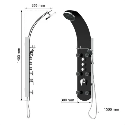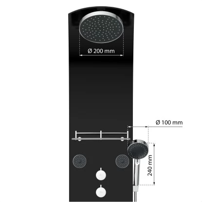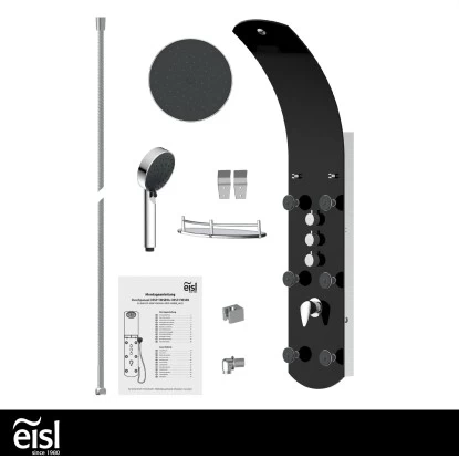 Eisl Duschpaneel Karibik 3 In 1 mit Regendusche Sechs Massagedüsen Schwarz. Exklusives Duschsystem aus schwarzem Sicherheitsglas – Eyecatcher in jedem Bad