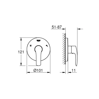 Die Grohe 5-Wege Umstellung Eurosmart überzeugt mit ihrer edlen Optik und der einzigartigen Grohe Technologie. Die Badarmatur besitzt ein Fertigmontageset für 29 708 000 (ohne Unterputz-Einbaukörper).