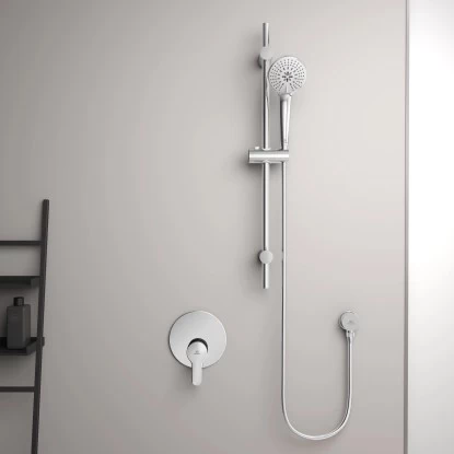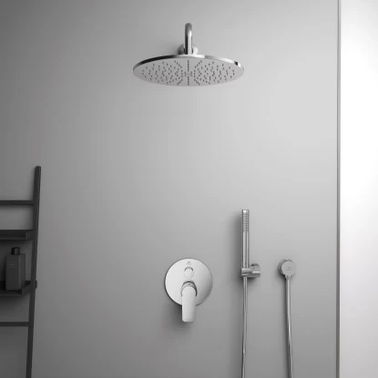 Idealrain ist ein vollständiges Brauseprogramm mit allen Komponenten zur Ausstattung eines schönen und komfortablen Duschbereichs. Dazu zählen zum Beispiel Handbrausen mit Navigo-Umschaltung und formschöne Kopfbrausen.