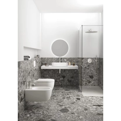 Idealrain ist ein vollständiges Brauseprogramm mit allen Komponenten zur Ausstattung eines schönen und komfortablen Duschbereichs. Dazu zählen zum Beispiel Handbrausen mit Navigo-Umschaltung und formschöne Kopfbrausen.