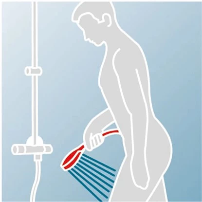 Dank der speziellen EinfachClean-Brausenoppen ist die Handbrause des Duschsystems zudem besonders leicht zu reinigen.