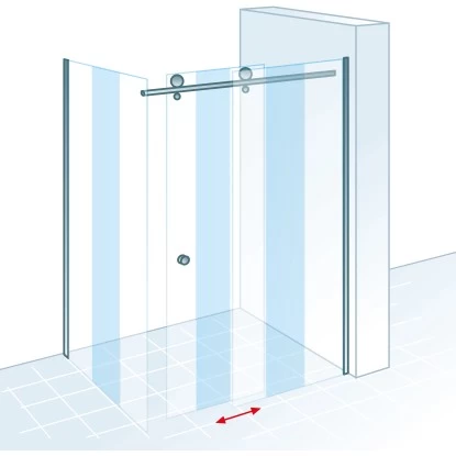 Die Gleittür inklusive Seitenwand MasterClass bietet Ihnen viel Platz zum Duschen, lässt sich jedoch gleichzeitig sehr platzsparend öffnend. Das Festelement befindet sich auf der rechten Seite. Wir empfehlen Ihnen bei der Gleittür inklusive Seitenwand die Montage ohne Duschbecken oder auf einem Schulte Duschbecken mit einem Wannenrand > 7 cm.