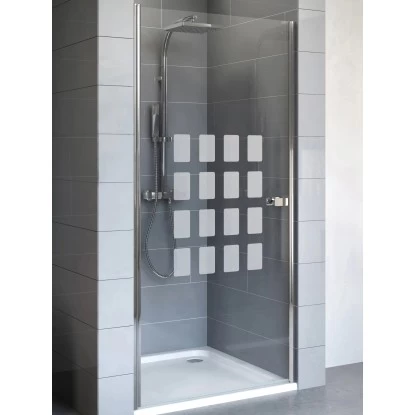 Die Youngline Drehtür für Nische ermöglicht eine optimale Raumnutzung in kleinen Bädern. Die Duschtür ist nach außen zu öffnen und besitzt einen modernen Softcubegriff. Die Einstiegsbreite beträgt 80 cm. Die Montage ist rechts- und linkseitig möglich. Der Heb-Senk-Mechanismus garantiert ein leichtes Öffnen und Schließen der Türen.