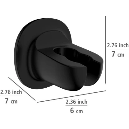 Eine praktische Möglichkeit zum Einhängen der Handbrause bietet der Wenko Duschkopfhalter Libertà Schwarz. Dabei wird der hochwertige Halter selbst ganz einfach ohne Bohren an der Wand befestigt. Der Duschkopfhalter Libertà ist aus stabilem Kunststoff (ABS) hergestellt und ist passend für alle Duschköpfe. Das Design in der Trendfarbe Schwarz fügt sich hervorragend in moderne Bad-Einrichtungen ein und wird zum stylischen wie nützlichen Hingucker im Badezimmer. Der Halter eignet sich ideal zum einfachen Einhängen von Handbrausen in 2 Positionen – zusätzlich oder als Alternative zu Duschstangen. Der Durchmesser der Wandhalterung beträgt Ø 7 cm. Die Anbringung des Duschkopfhalters Libertà gelingt innerhalb von Minuten mithilfe eines Spezial-Klebepads, das Sie ganz leicht an der gewünschten Stelle anbringen können. Geeignet ist das Klebepad für alle glatten, luftundurchlässigen Oberflächen wie zum Beispiel Fliesen oder Glas. Auch nach vielen Jahren der Nutzung lässt sich der Duschkopfhalter samt Kleber rückstandslos wieder entfernen.