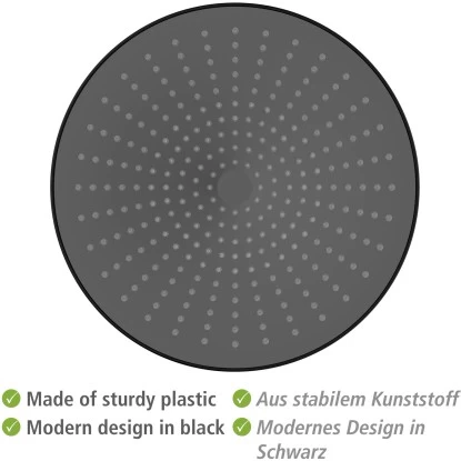 Hergestellt ist der Regenduschkopf aus stabilem Kunststoff (ABS). Durch die Noppen an der Brause lässt er sich leicht reinigen. Etwaige Kalkablagerungen an den Düsen können einfach mit dem Finger abgerieben werden. Der langlebige Duschkopf verfügt über einen 1/2 Universalanschluss und ist auch für Duschen mit Durchlauferhitzer geeignet. Der Regenduschkopf Ultimate Shower von Wenko in Schwarz beschert Ihnen ein ultimatives Duscherlebnis. Das Design in der Verbindung aus Schwarz und Grau macht die Duschkabine zudem zu einem modernen wie eleganten Wohlfühlort.